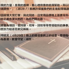 堂會 網上崇拜對教會為領詩、敬拜隊、司琴、詩班等等帶領敬拜的事奉人員帶來挑戰。求主額外賜恩加力給這些弟兄姊妹。