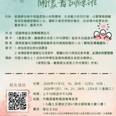 導師:何劉少媚女士(伯特利神學院基督教婚姻及家庭治療碩士、《傲雪紅梅 – 離婚婦女成長工作坊課程》作者)