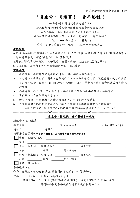 查詢:請電2715-9683 傳道部Phoebe Chan