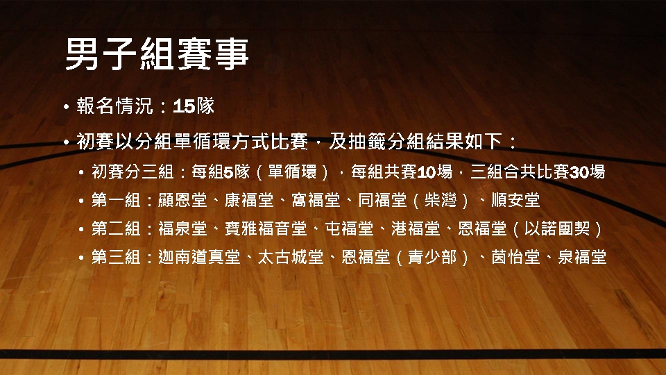 第三組:迦南道真堂、太古城堂、恩福堂(青少部)、茵怡堂、泉福堂