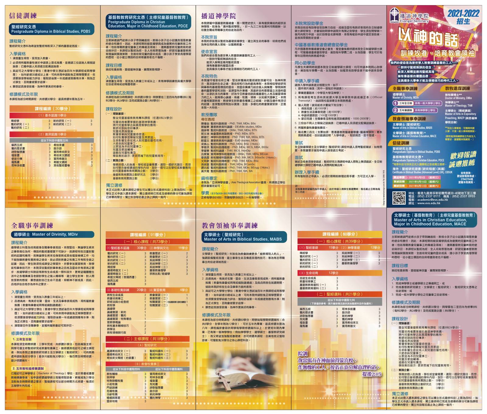 詳情瀏覽播道神學院網頁 www.evs.edu.hk