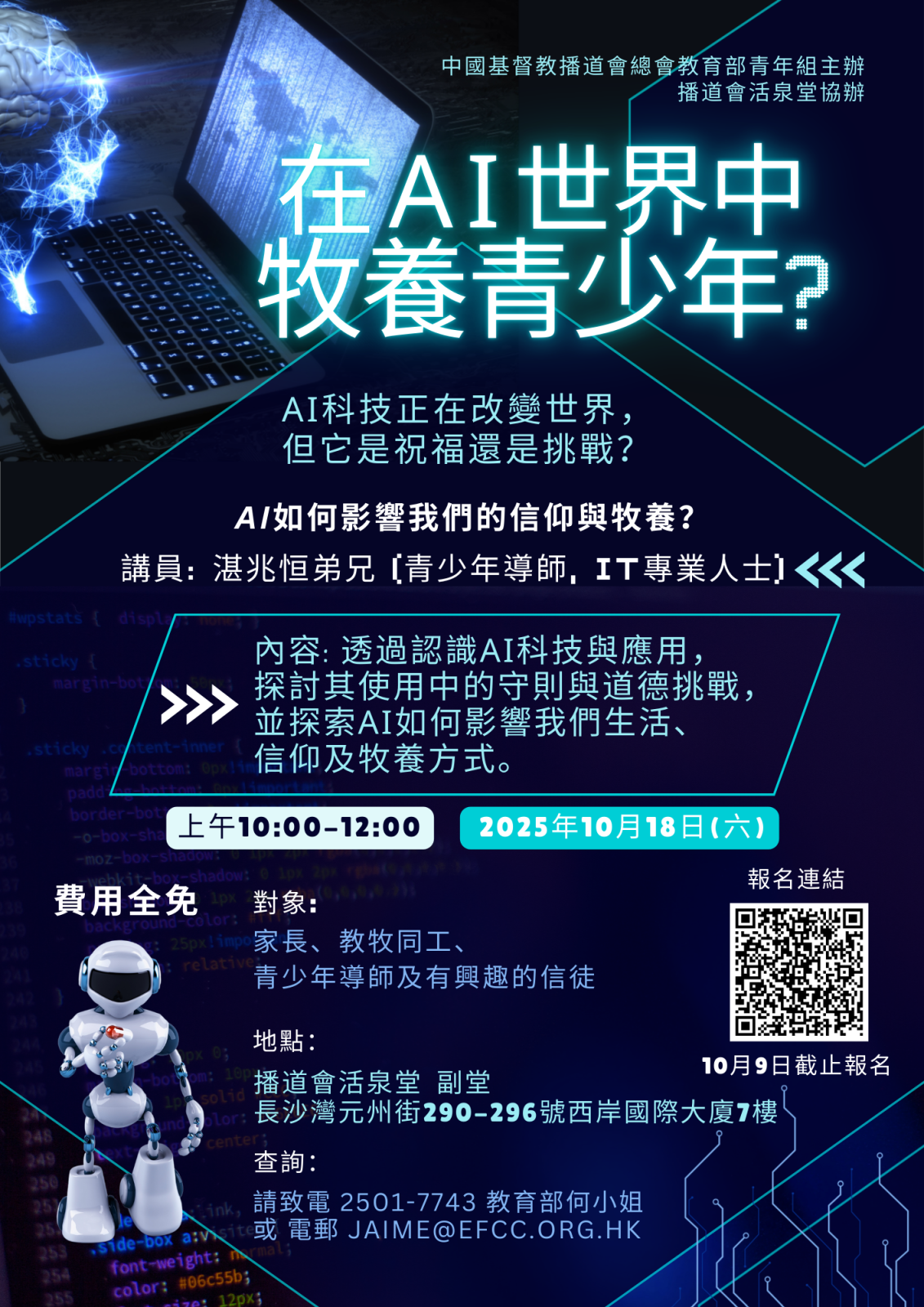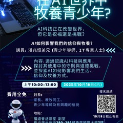 透過認識AI科技與應用,探討其使用中的守則與道德挑戰,並探索AI如何影響我們生活、信仰及牧養方式。